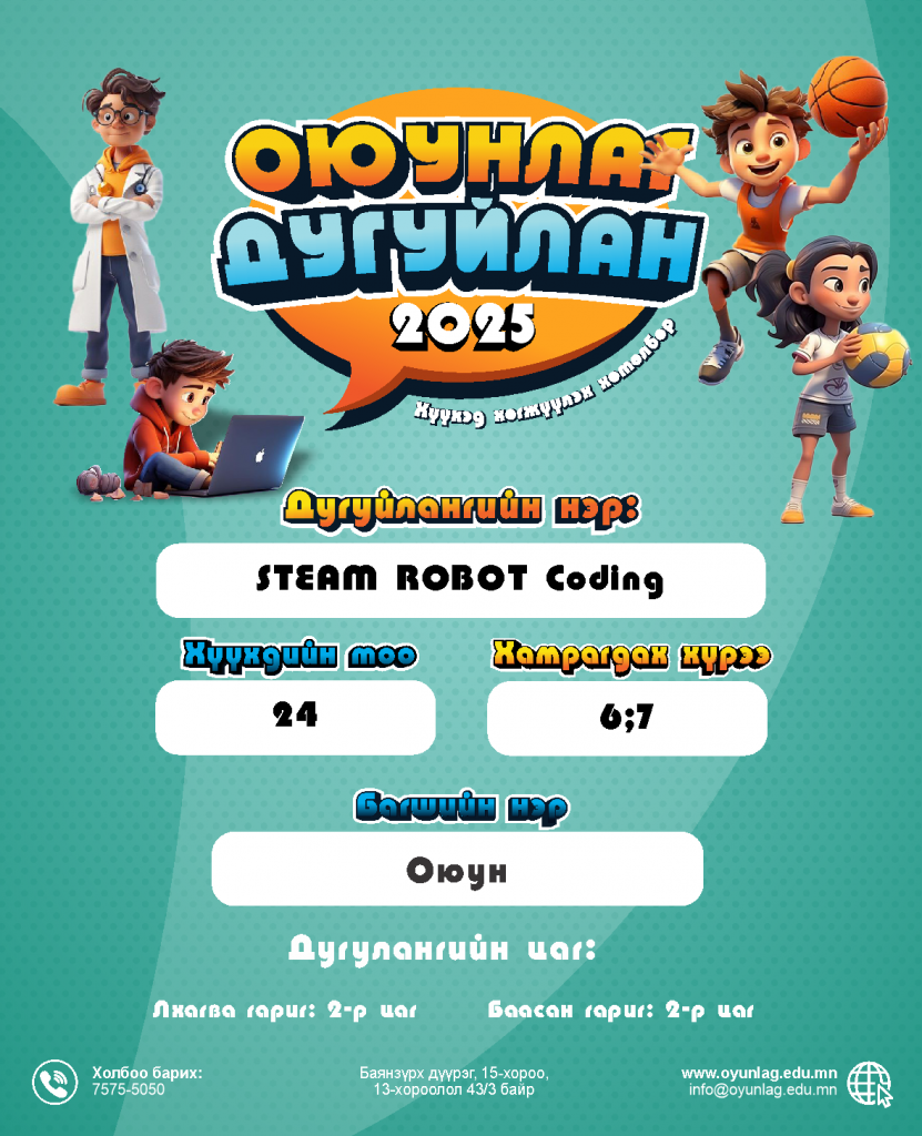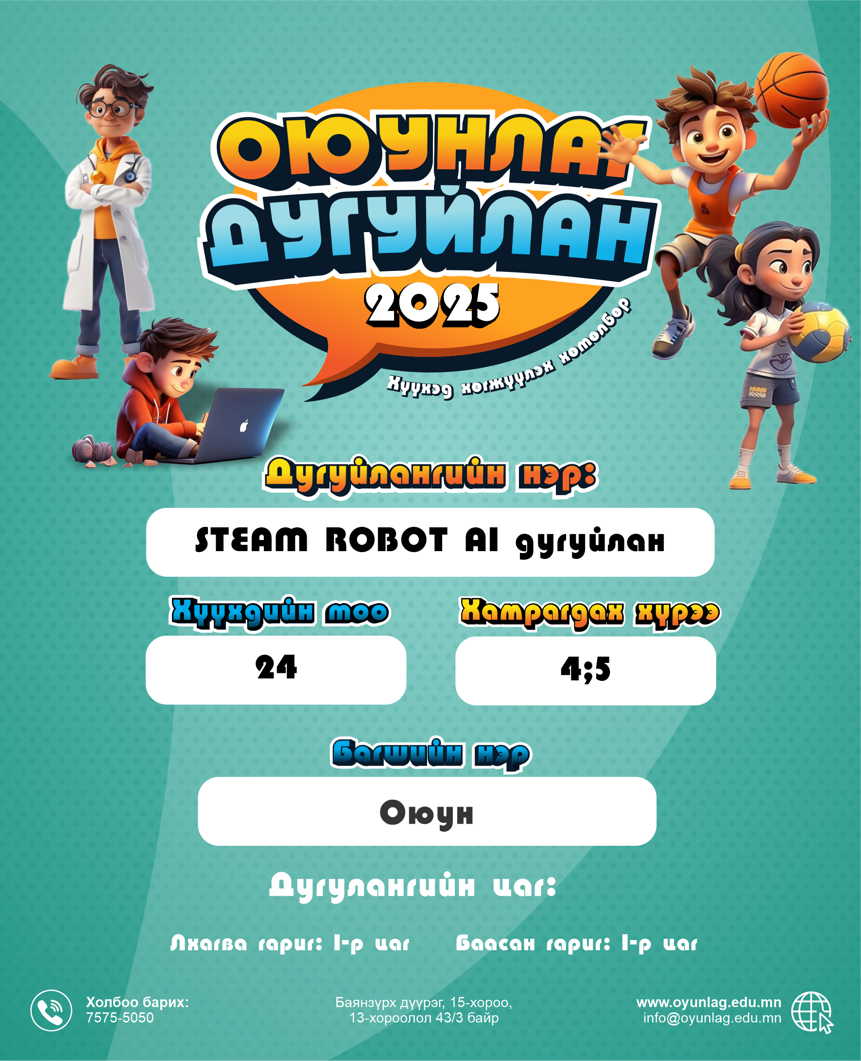 Сургуулийн өөрийн хөтөлбөр: STEAM , Мэдээлэлзүй , Геометр, Хятад хэл, VR /Virtual reality/, Технологи /3D sowftwares and printing/