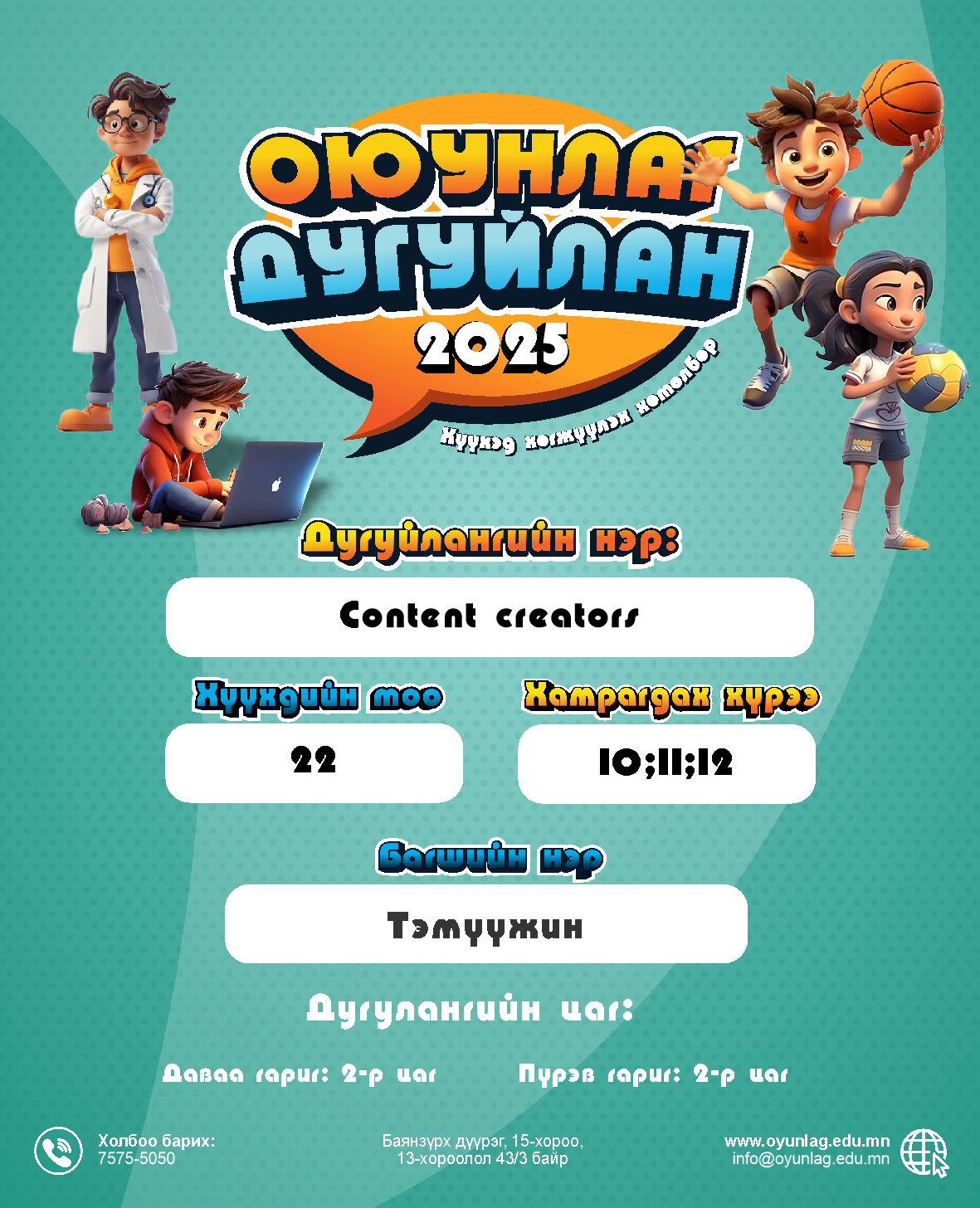 - Өөрийгөө илэрхийлэх илтгэх ур чадварыг хөгжүүлэх дугуйлангууд