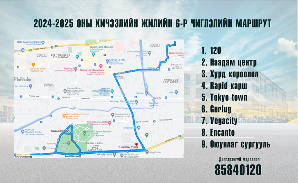 2024-2025 оны шинэ хичээлийн жилийн “Сурагчдын автобус” дараах чиглэлийн дагуу явахад бэлэн боллоо.