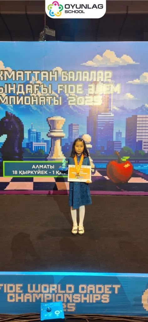 3г ангийн сурагч Б. Цэлмэг Казакстан улсад болсон өсвөрийн аварга шалгаруулах шатрын тэмцээнд хүрэл медаль хүртэв! ![]()
