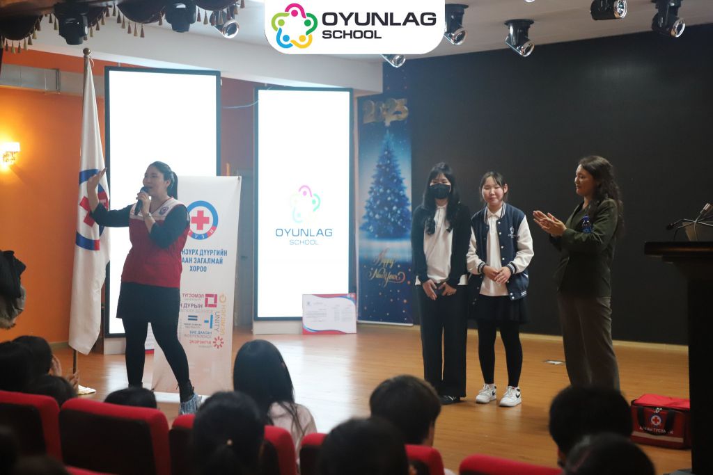 Ерөнхий боловсролын “Оюунлаг” сургуулийн Карьер хөгжлийн төв болон Монголын Улаан Загалмайн Нийгэмлэгийн Баянзүрх дүүрэг дэх салбар хороо хамтран ахлах ангийн сурагчдад Монголын Улаан Загалмайн Нийгэмлэгийн үйл ажиллагааг танилцуулж, бусдад туслах болон энэрэх сэтгэлгээг эрхэмлэхийн чухлыг онцлон ярилцлаа.