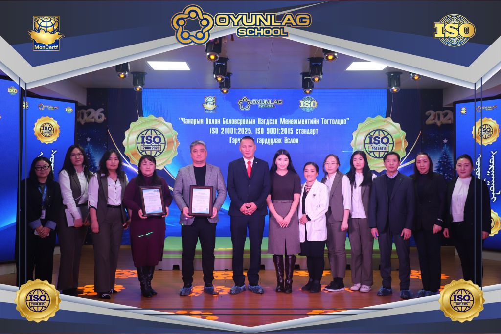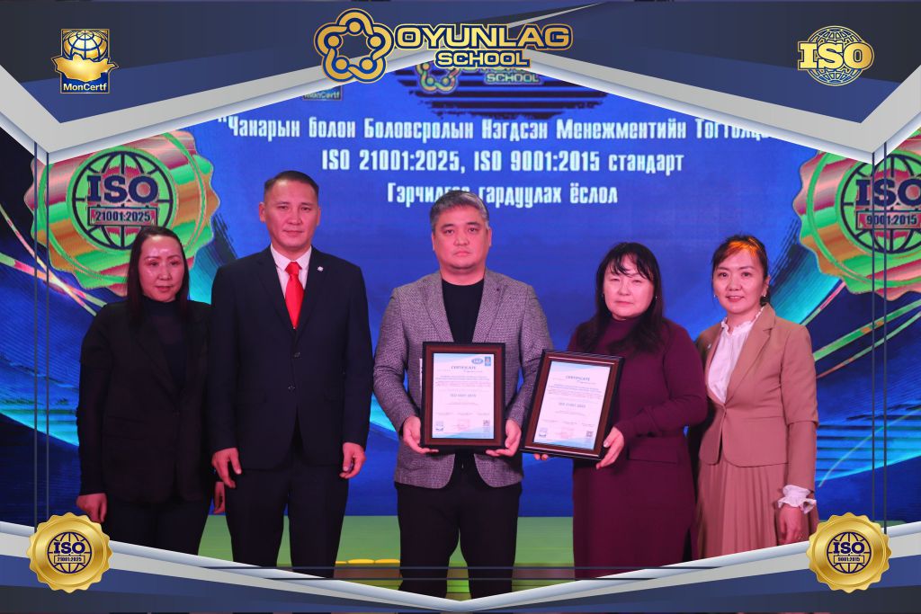 Оюунлаг сургууль ISO 9001:2015, ISO 21001:2025 олон улсын стандартын гэрчилгээг гардан авлаа